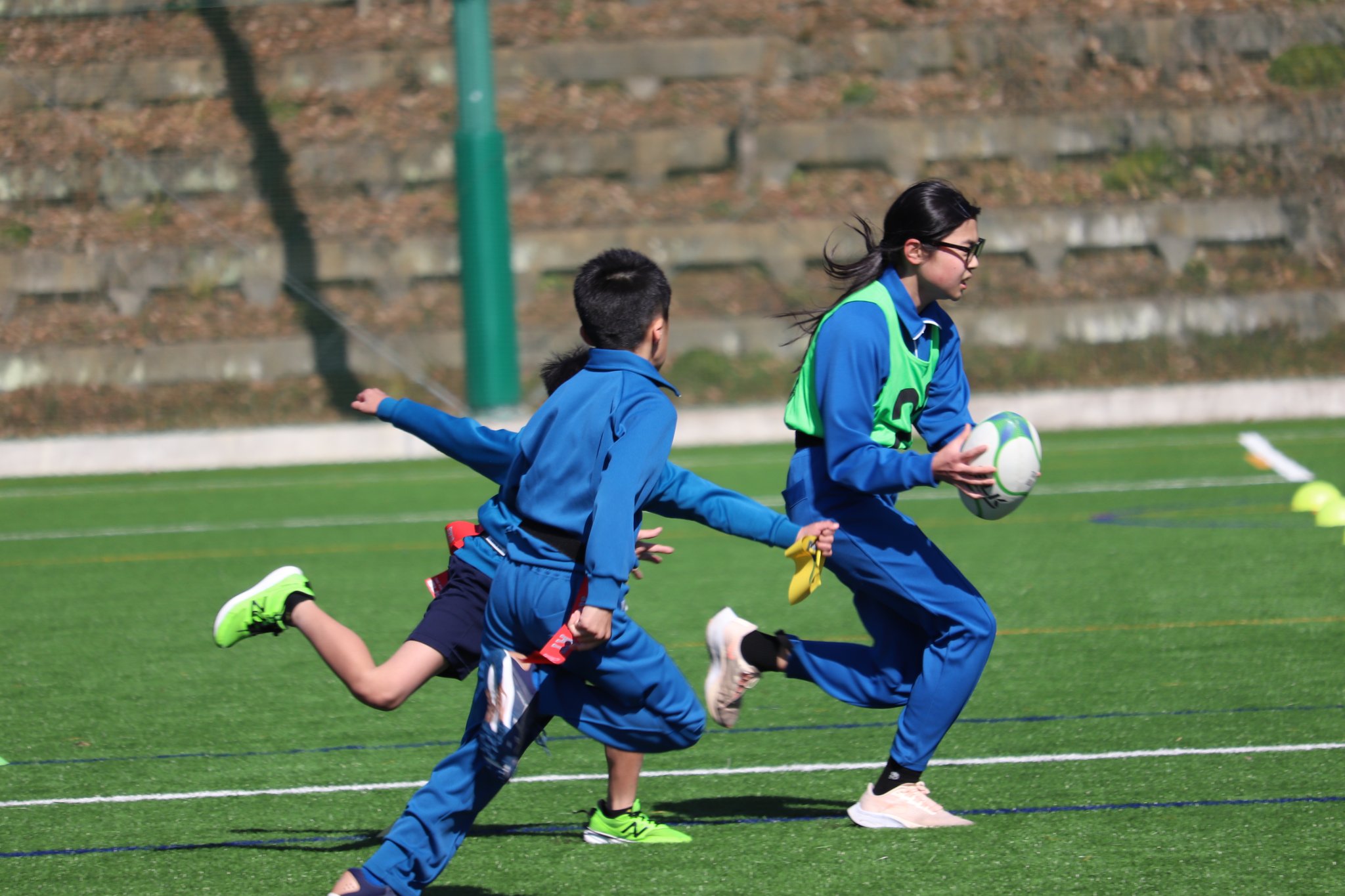 昨年はコロナ感染の影響で中止になった市内小学生を対象としたタグラグビー大会を行いました。
