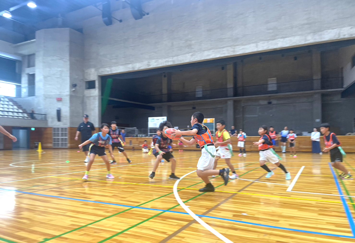 ・タグラグビー大会を実施する(ラグビーボールに触れる機会を作る)。