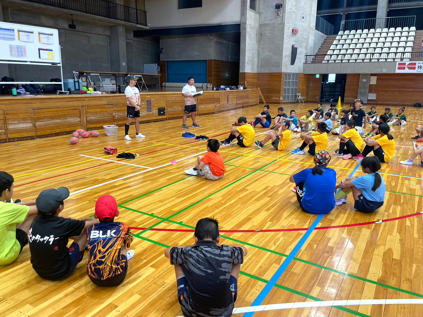 8月の猛暑の中での開催でしたが、実施会場は冷房付きの体育館で天候の影響を受けずとても良い環境で行うことができました。参加人数の目標を設定し、市川市には市内全小学校、市川市協会には市内ラグビースクールに開催案内配布するなど告知に協力していただきましたが目標に届かず、子ども達へのラグビーの関心を高めて行く課題として認識しました。