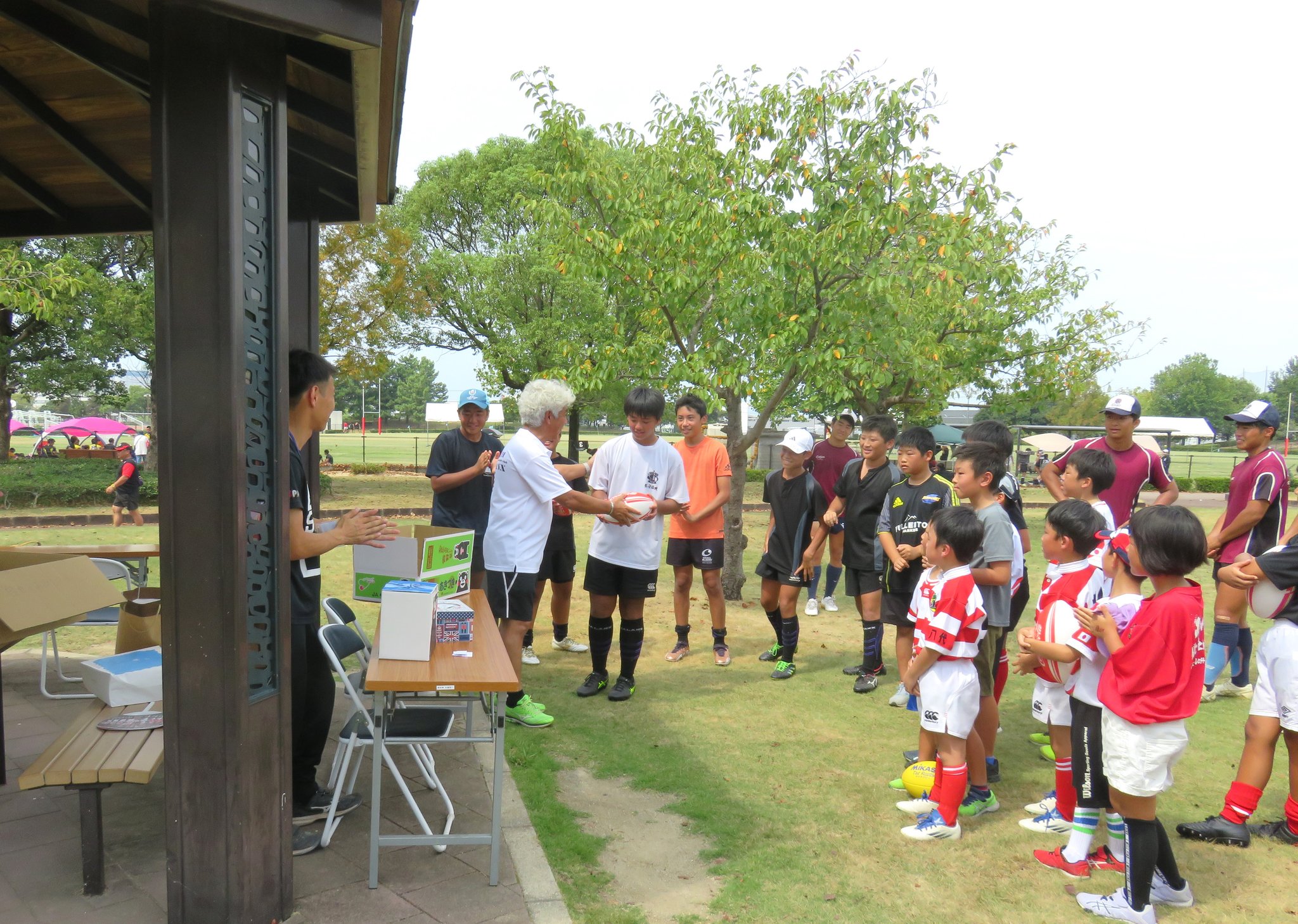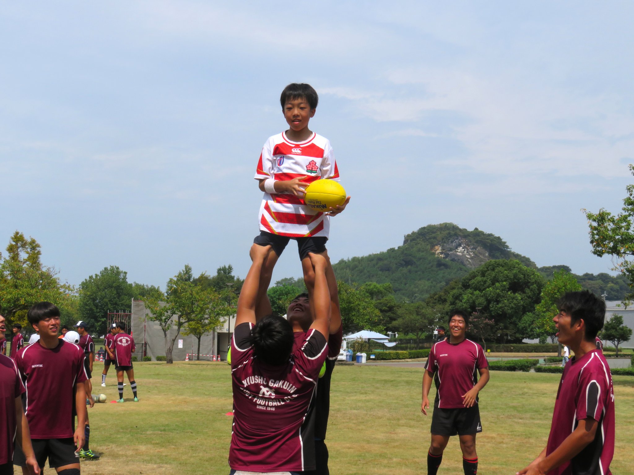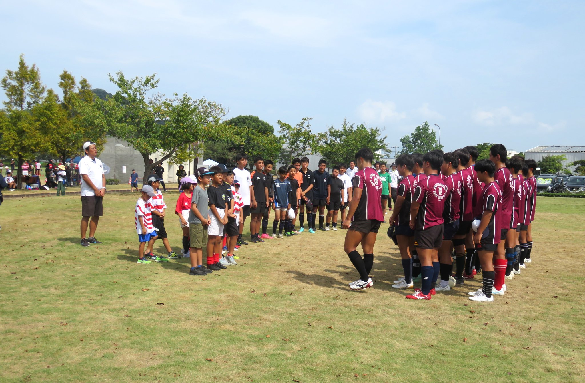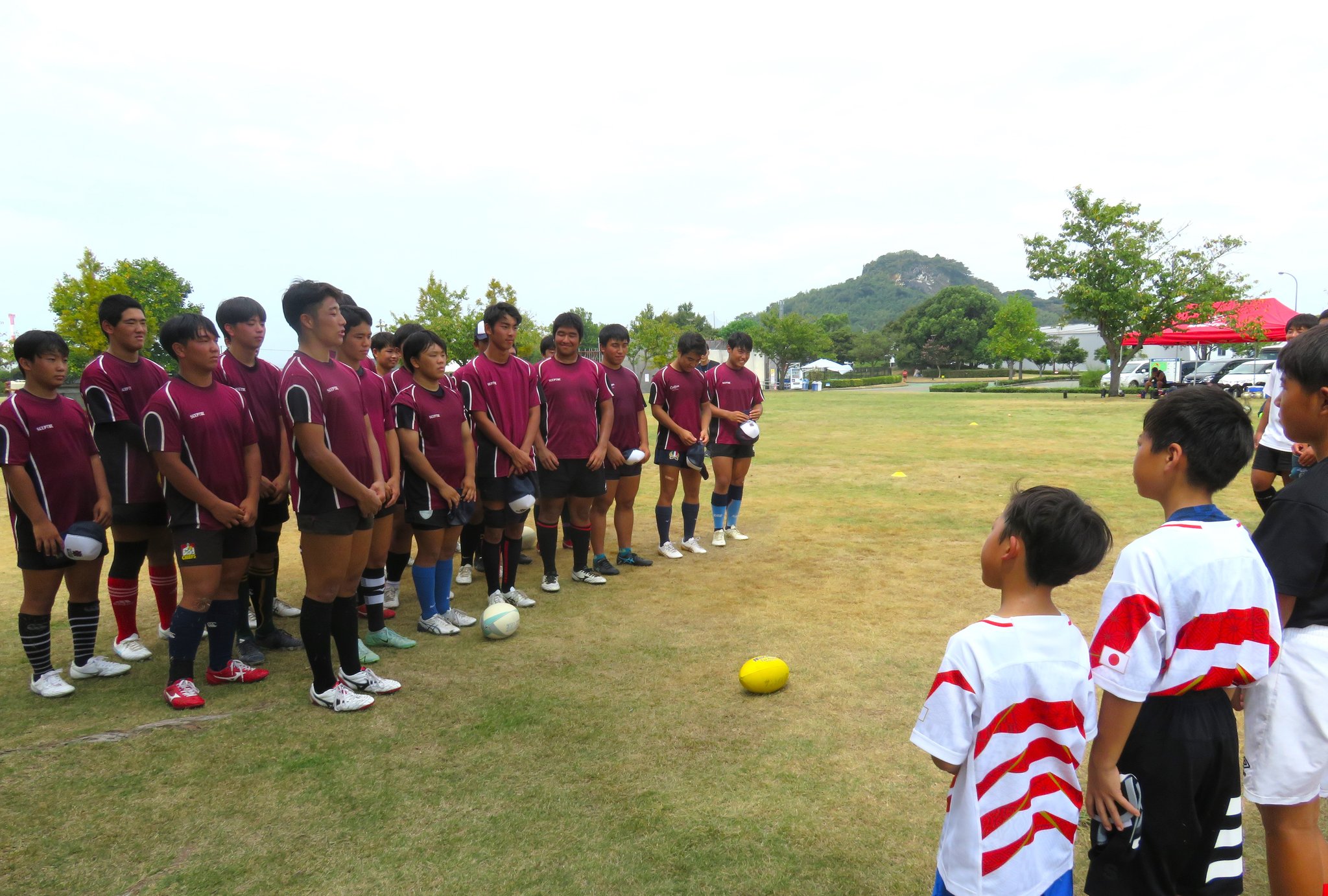 今年は減少する高校生ラガーの普及につながるすそ野拡大を目的に地元の小中学生を対象としたラグビー体験会も計画されました。