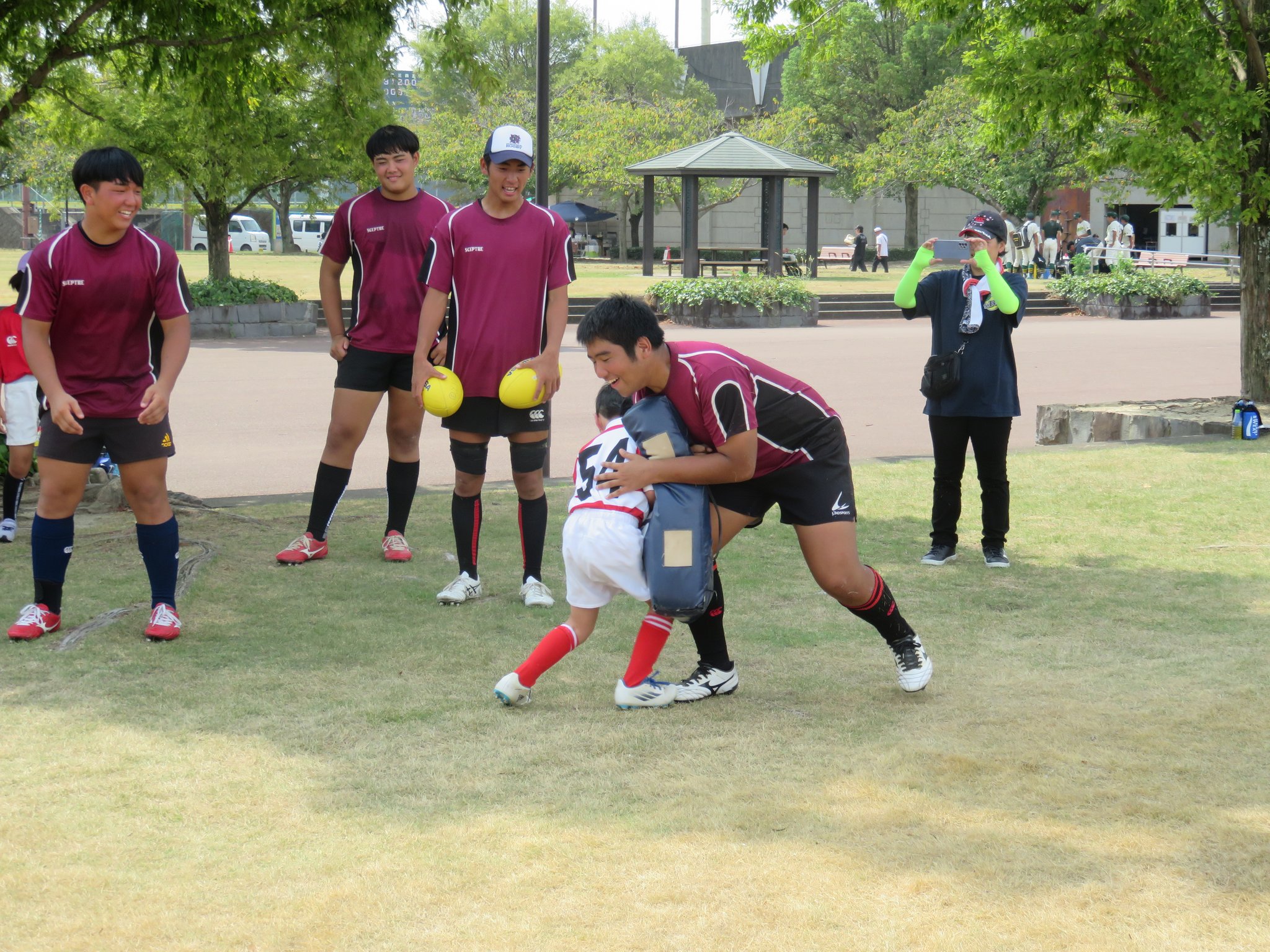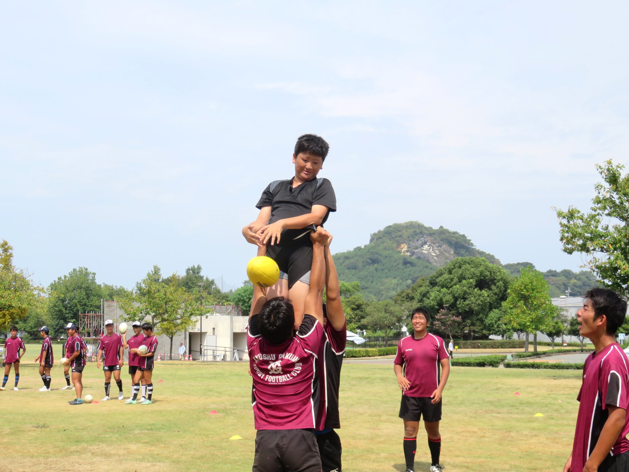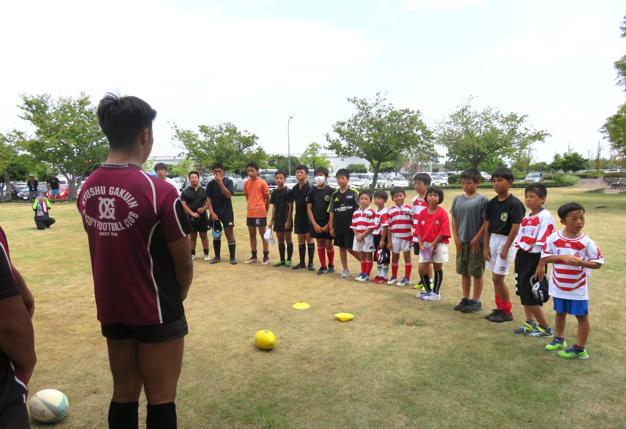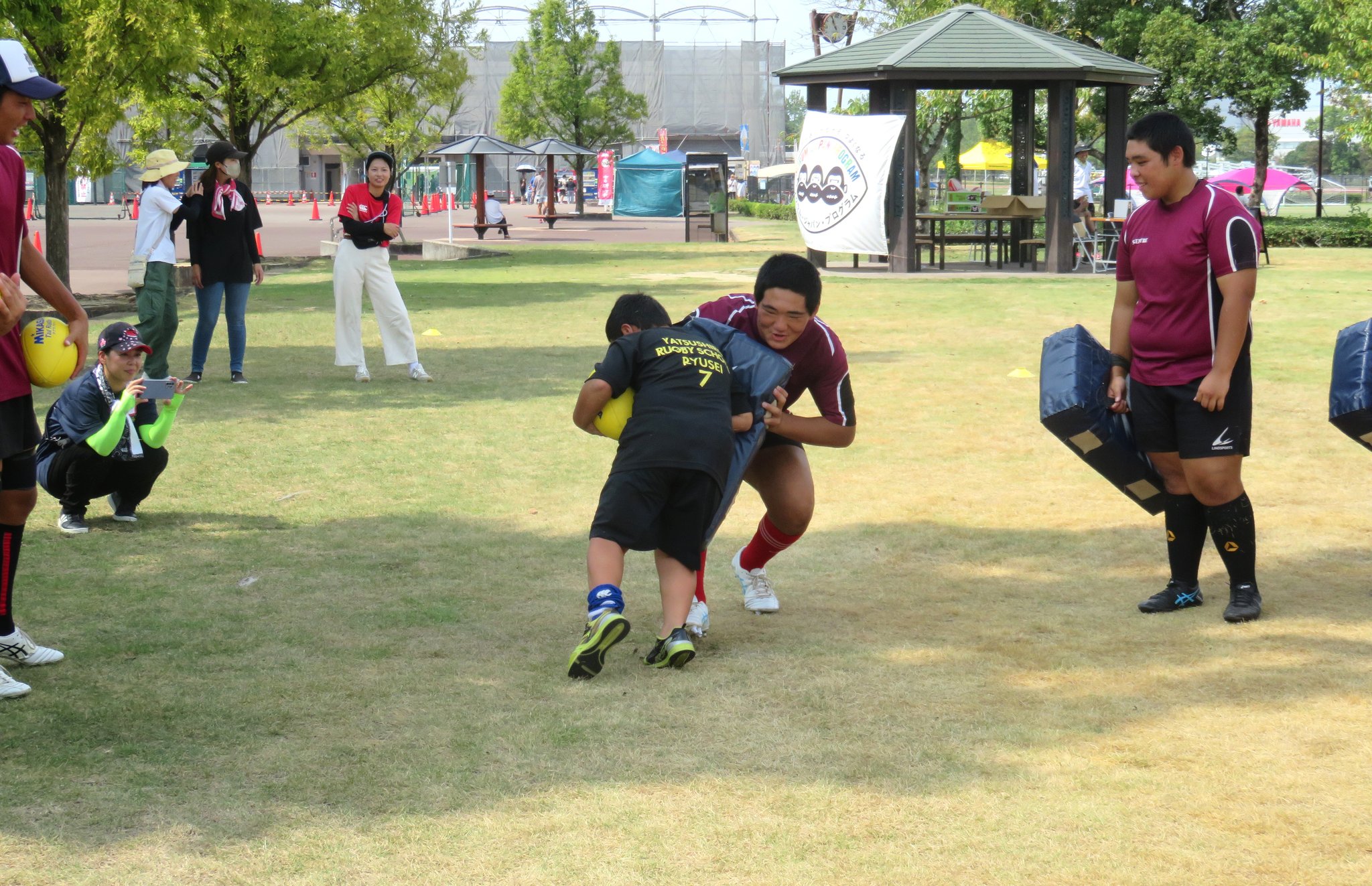 今年は減少する高校生ラガーの普及につながるすそ野拡大を目的に地元の小中学生を対象としたラグビー体験会も計画されました。
