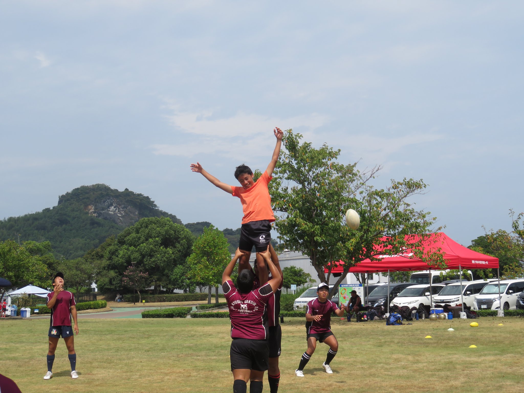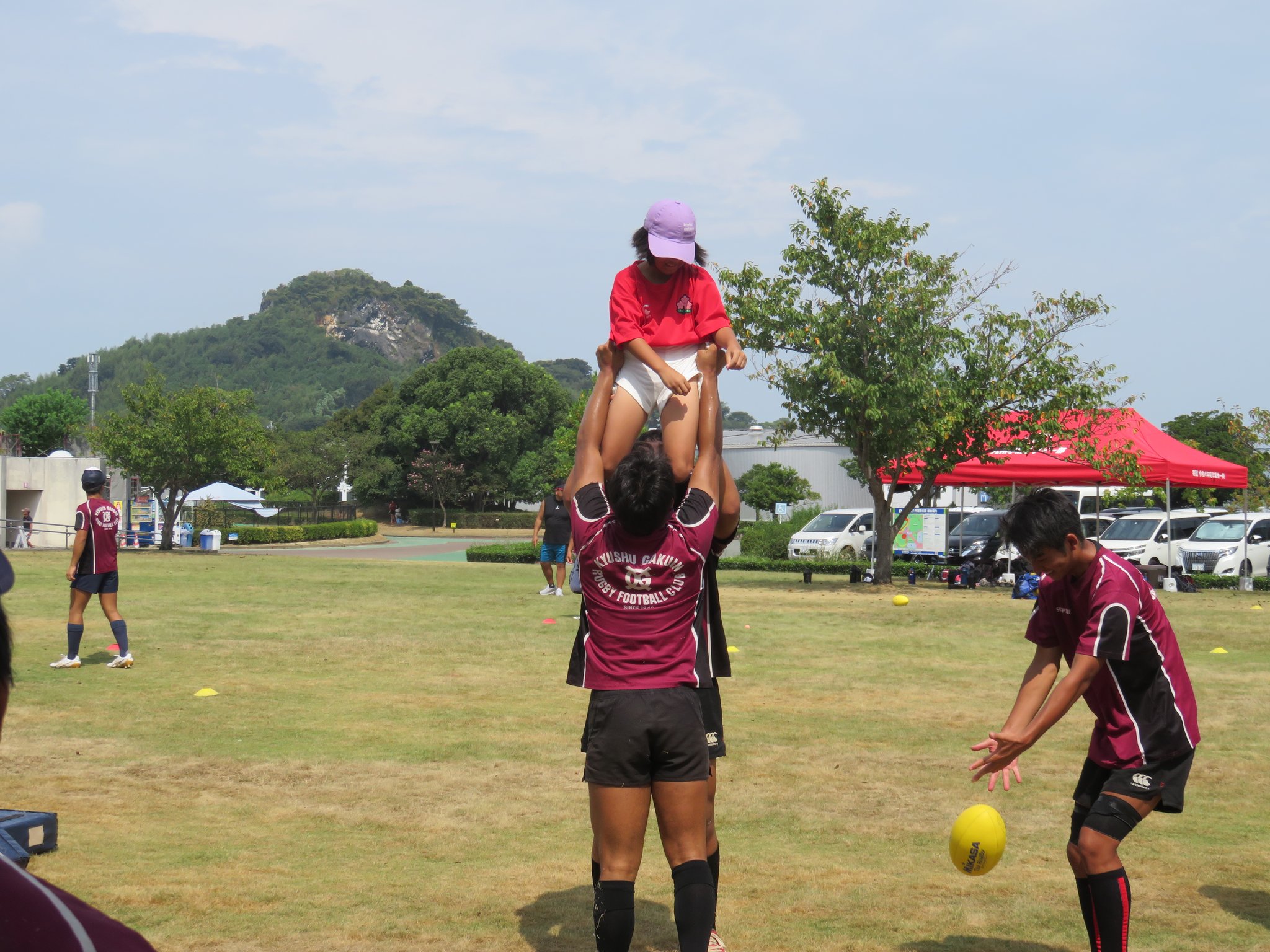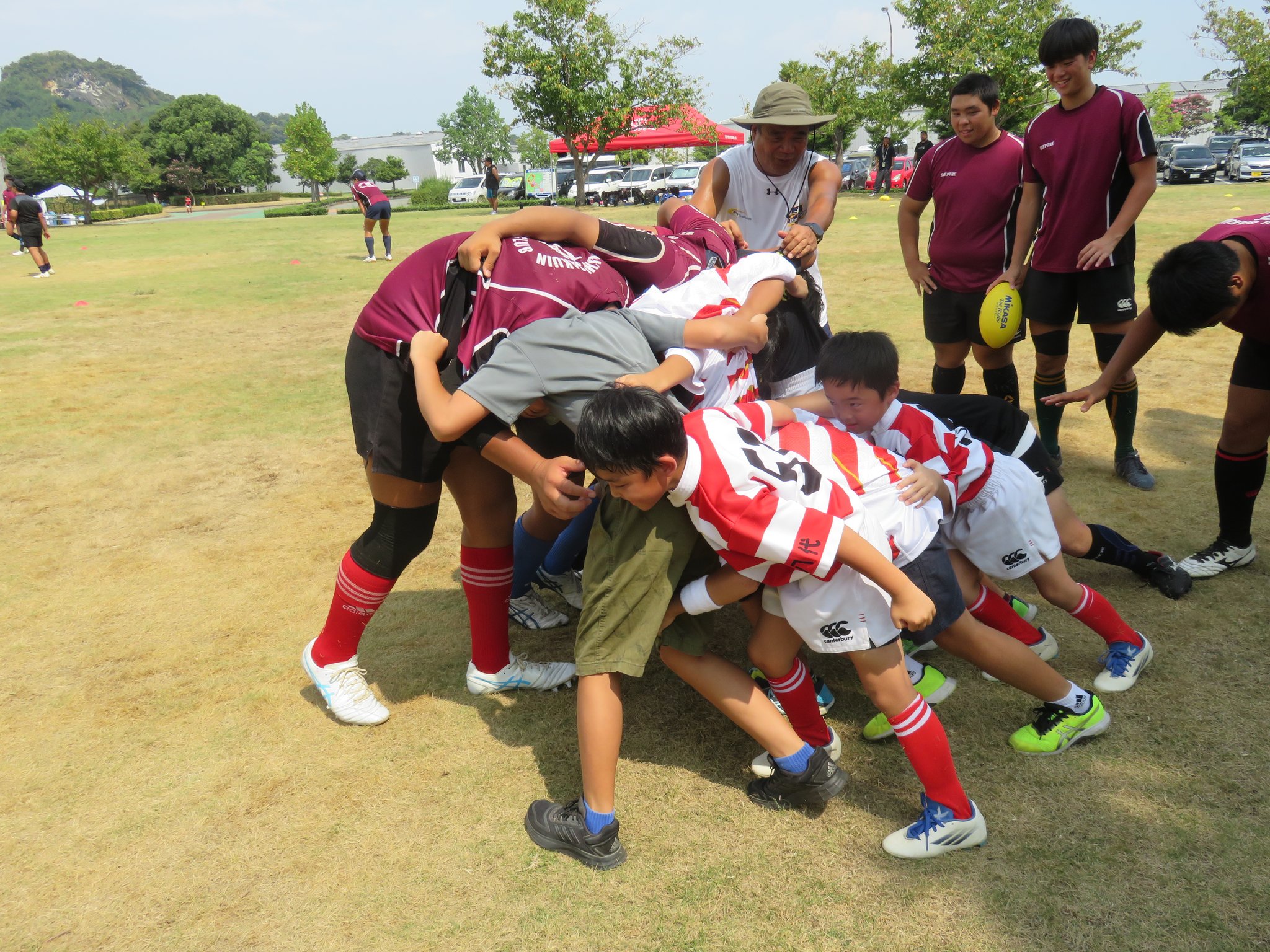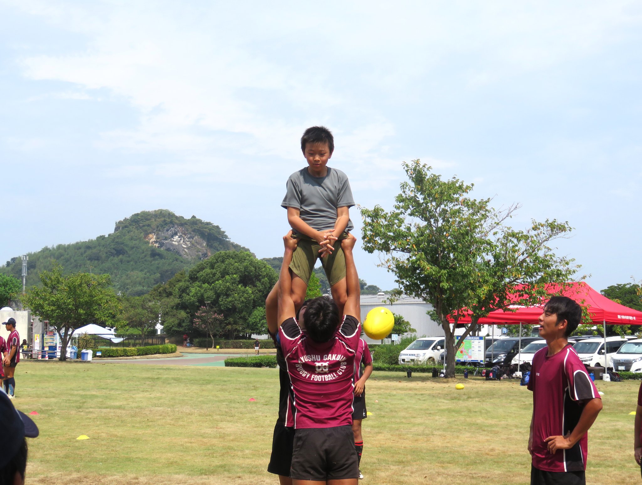 今年は減少する高校生ラガーの普及につながるすそ野拡大を目的に地元の小中学生を対象としたラグビー体験会も計画されました。