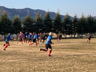 中学生ラガー(中学ラグビー部とラグビースクール)、1年生・2年生全員が集まって試合を行い、12名揃わないチームはお互いで合同チームを編成し、普段ではできない試合経験を増やすことができたとのこと。また、レフリーとしても笛を吹く機会が得られ、レフリングの向上に役立つ経験となりました。