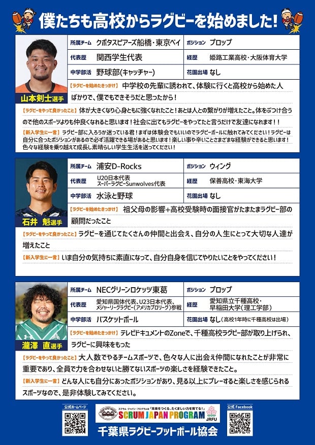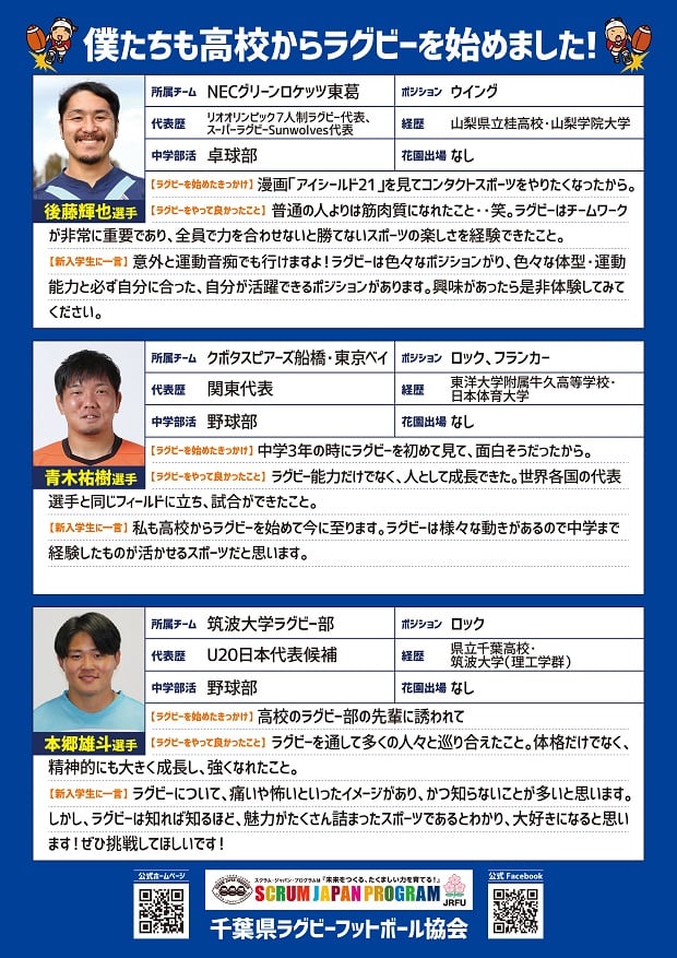 千葉県ラグビー協会「高校からラグビー始めよう!」ポスター・チラシ作成・配布の取組み