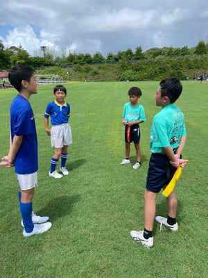 ・交流会後には上級生の部でアフターマッチファンクションとして、3~4人1組で交流会の振り返りを行うことで、子どもたち自身のプレーに対する理解や仲間作りに役立った。