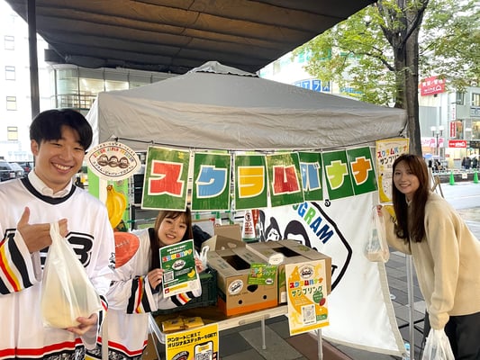 スクラム・ジャパン・プログラム協賛会員の船昌商事(株)様が、同社の商品「スクラムバナナ」の販売促進事業の一環としてバナナのサンプリングを実施されました。