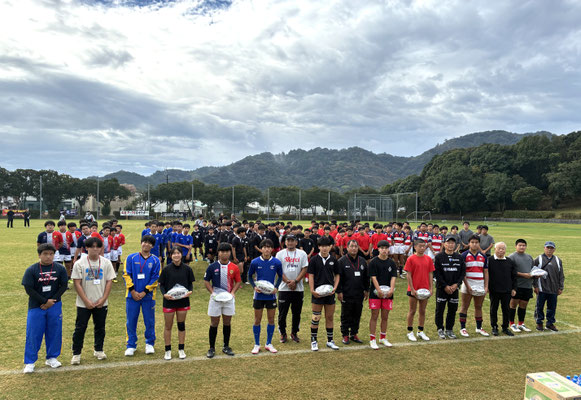 【参加者】:別府部活・別府ラグビースクール、大分ラグビースクール(以上大分県)富島中学校、高鍋西中学校、グランセ延岡、宮崎ラグビースクール、ヒートウォーリアズ(都城・日南)(以上宮崎県)