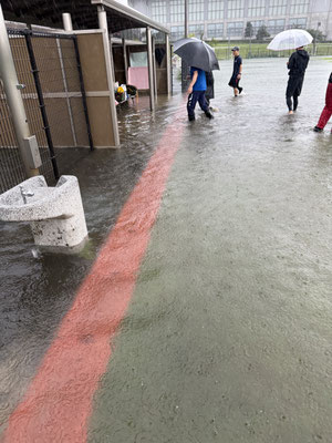 ところが、大雨の影響で中学生は参集が不可能と判断して順延とし、小学生のみ時間を変更しながら開催することとなりました。基本的には、日ごろ少ないゲーム形式の活動を中心として、繰り返し行いました。