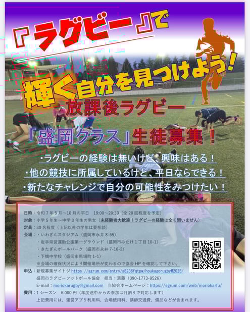 【名 称】:放課後ラグビー【盛岡クラス】